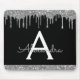 Chic Modern Black and Silver Modern Sparkle and Dripping Glitter Girly Monogram Name Monogram Mousepad. This Chic Elegant Mousepad can be customized to include your first name and initial.