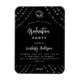 A black background decorated with faux silver stars and a cap. Personalize and add a name and party details. The text Graduation and the name are written with modern hand lettered style script.