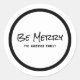 Trendy and modern Simple Script Be Merry Holiday Stickers with a black text design with the words "Be Merry" in a bold handwritten script. These elegant typography design stickers can be easily customized with your family name or other text. Find more customization options by clicking Customize It.