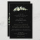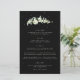 A black, four course wedding menu, featuring a stem of hand painted snowberries and eucalyptus on the front and a wreath on the back. All text is fully editable, and the scattered dots on the front and back can be deleted before ordering if you would prefer. Please view this Collection in my store for menu’s with alternative floral arrangements, a different number of courses and in different sizes/colors/shapes. Coordinating items also available.