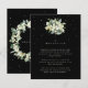 A black flat wedding reception enclosure card featuring an elegant bouquet/posy of hand painted snowberries and eucalyptus on the front and a wreath on the back of the card. All text is fully editable and the scattered dots on the front and back can be deleted before ordering if you would prefer. This card is available with alternative botanical designs, in a landscape format, and in different colors. Please view the Collection in my store to see all options and coordinating items.