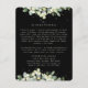 A black flat wedding enclosure card for wedding travel information or for directions if your reception is at a different venue. Featuring an edging of hand painted snowberries and eucalyptus on the front and a wreath on the back of the card. All text is fully editable and the scattered dots on the front and back can be deleted before ordering if you would prefer. This card is available with alternative botanical designs, in a landscape format, and in different colors. Please view the Collection in my store to see all options and coordinating items.