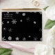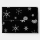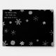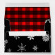 These festive envelopes feature falling snowflakes on a black background. The inside of the envelope features a red and black plaid Tartan pattern. Personalize your return address or remove it completely.