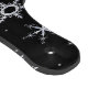 This wintry design features white snowflakes on a black background.