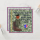 This invitation is decorated on the front with a black toy soldier and a brand new military brown boot with the words "Please Join Us At a Soldier's Boot Camp Going Away Party" superimposed on a camoflage background, with a Red, White, and Blue border.