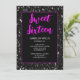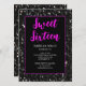 Black sparkles Sweet 16 neon pink elegant script Invitation