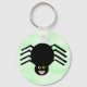 A spooky black spider with eight hairy legs, yellow eyes with big black pupils and its mouth open showing its fangs.