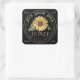 A square black label with vintage sunflower illustration and realistic bee. The word "Honey" is written in a decorative gold font. These 1.5”x 1.5" labels fit 8 and 12 oz. plastic bears.