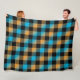 A Retro Colorful Designed Fleece Throw Blanket In Blue, Orange and Black Square Pattern