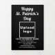 Black trifold card for St. Patrick's day that you can customize by uploading the images of your products or services, your business logo, typing your business name, address, phone number, e-mail and website. Customize it and give it to your customers or clients to greet them this St. Patrick's day. Trifold card as a marketing material also to advertise your products or services. Please check the appearance of all sides after uploading images and typing texts. If the appearance is pleasing to you, you can place your order now. If you need to resize and reposition the images and texts to fit on this trifold card, please adjust in the design tool. You can also change the background color, font color and font style in the design tool. Happy St. Patrick's Day! Wishing you the best of luck, joy and more sales this holiday.