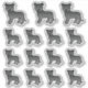 Destei's original cartoon illustration of a cute black coat color English Staffordshire Bull Terrier / Staffie breed dog. The dog design is placed 15 times on the sheet. The top three ones are slightly bigger than the rest of the 12 other ones.