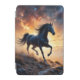 Wild desert black stallion running in a lightning storm, with colorful skies, full of stars and nebulae