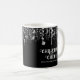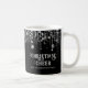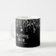 Black and white string lights sparkles Christmas mugs with a cute whimsical fun design with family name for a festive Holiday season.