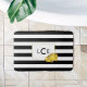 Black Stripe & Faux Gold Peony Monogram Bathroom Mat