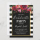 You can pick to download your custom Black Stripe Floral Bacheloretteparty Invitation in any of the following 4 file types: PNG, JPG, Standard PDF, and Print PDF. These 4 file formats have been selected so they cover all your inviting needs. PNG and JPG are great for sending your invitations online. All of these file formats are great if you want to print your invitations yourself. However, having unlimited downloads allows you to download all four formats for maximum versatility. You can even apply your digital download design to other popular products on Zazzle.