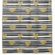 Bold black and white stripe pattern shower curtain accented with luxe gold-style hearts for a chic, romantic look. A high-contrast design with a modern glam mood.