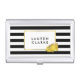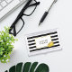 This sleek and feminine business card holder features bold black and white stripes with a gleaming peony flower in faux gold effect. Coordinates with our Black Stripe & Gold Peony office accessories, paper products, and accessories. Customize with a monogram, name or text of your choice!