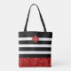 Black Stripe Pattern & Red Glitter, Monogram Tote Bag
