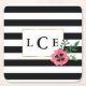 Black Stripe & Pink Floral Monogram Coasters