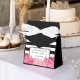 Elegant bridal shower favor boxes feature a chic pink and black color palette, with a black and white stripe front panel and a grouping of watercolor peony flowers in magenta pink and rose quartz, a 2016 color of the year. Add the guest of honor's name, event type, and date in coordinating black lettering.