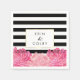 A beautiful choice for engagement parties, bridal showers and weddings, these elegant black and white striped napkins feature your names or text of choice inside a faux gold bordered box, with a trio of pale and bright pink peonies blooming along the bottom.