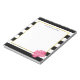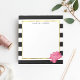 Chic personalized notepad features a crisp black and white stripe background, faux gold foil border, and a vibrant pink watercolor peony flower. Customize with a monogram, name or text of your choice.