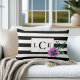 Black Stripe & Purple Pansy Monogram Throw Pillow