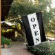 Black strip open sign flag with vertical lettering