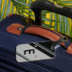 Black and gray diagonal stripes with a small airplane, and custom name initial letter... cool for the stylish traveller
