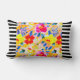 Black and White Striped Trim Orange Floral Pattern Reversible Lumbar Throw Pillow