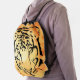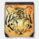 Black Striped Tiger on Fiery Orange Drawstring Bag