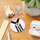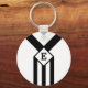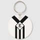 Three alternating black and white chevrons descend from the top of the geometric pattern and end at a diamond. It looks like a stylized medal hanging from a ribbon. The diamond contains a customizable monogram. Three black stripes extend from the bottom of the diamond to the base of the vertical design.