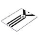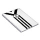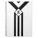 Three alternating black and white chevrons descend from the top of the geometric pattern and end at a diamond. It looks like a stylized medal hanging from a ribbon. The diamond contains a customizable monogram. Three black stripes extend from the bottom of the diamond to the base of the vertical design.