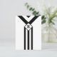 Three alternating black and white chevrons descend from the top of the geometric pattern and end at a diamond. It looks like a stylized medal hanging from a ribbon. The diamond contains a customizable monogram. Three black stripes extend from the bottom of the diamond to the base of the vertical design.