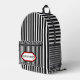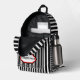 Backpack stripe design that you can customise with any text of your choice. Should you require any help with customising then contact us through the link on this page. Black stripe design personalised backpack