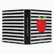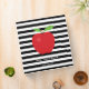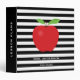 This teacher binder features a trendy black and white horizontal stripe pattern with a digital illustration of a red apple.