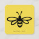 Black Stylized Bee Illustration on Yellow Square Business Card