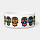 Black sugar skulls pet bowl.