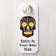 Black sugar skull door hanger. Text, background color and image size are all customizable.