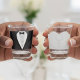 Black suit and bowtie shot glass for a groom or newlywed husband. Great gift for a bachelor party. Grab a matching suit shot glass for the groom's wife.