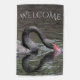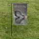 Flag bracket is super easy to assemble. There is a prong fork that goes into the ground. I dug a shallow hole to bury the prongs and still had enough height. Reinforced stitching on for the flag opening. Colors are true to the website. Mona Lisa's sign with the text is easy to read, the text is clear and not blurry.