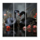 Two black swans, a beautiful partnership and with flowers that really set the mood of the creation. Generative content.