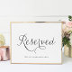 This customizable reserved sign features black dainty calligraphy with simple typography. Personalize by adding your details. This calligraphy reserved sign is perfect for any wedding theme or season. Matching items are available.