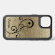 This is an elegant phone case for her, featuring a pretty black swirl design with her name in black script at the bottom. The image and text are placed on an exquisite gold textured look background. Classy!