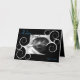 This elegant black and white swirl design gently and elegantly accents this photo birth announcement. The design of this announcement centers around an irregularly shaped frame center which encloses baby's picture and is finished off with the blue accent text. The inside of this card continues the black and pink pattern that began on the cover.