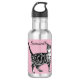 Black and White Tabby Cat Cat Blush Pink Water Bottle, with a fully customizable name. Designed from one of my original ink pen drawings.