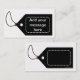 A business card size black tag with a white border against a white background. Add it into your invitation as an extra message reminder. Fill in your personalized message.