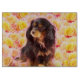 A lovely Cavalier puppy with roses cutting board.