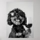 Black & Tan Cavapoo Drinking Wine Wall Art, Black Poster