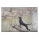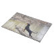 This placemat features a beautiful photo of a black & tan coon hound stiffing the air at the river.